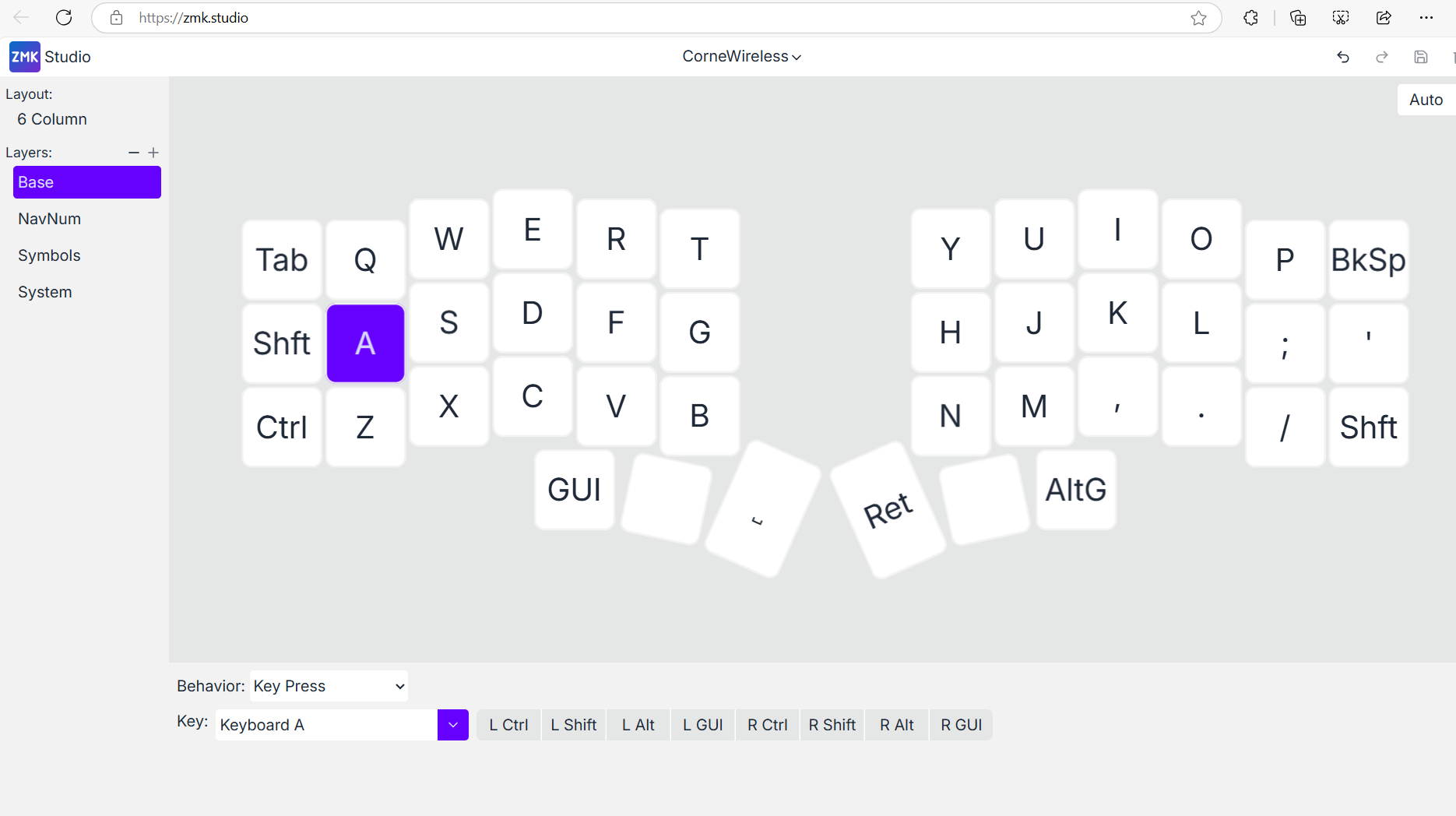 Now with ZMK Studio!!  Change the keymap on the fly with your Browser.