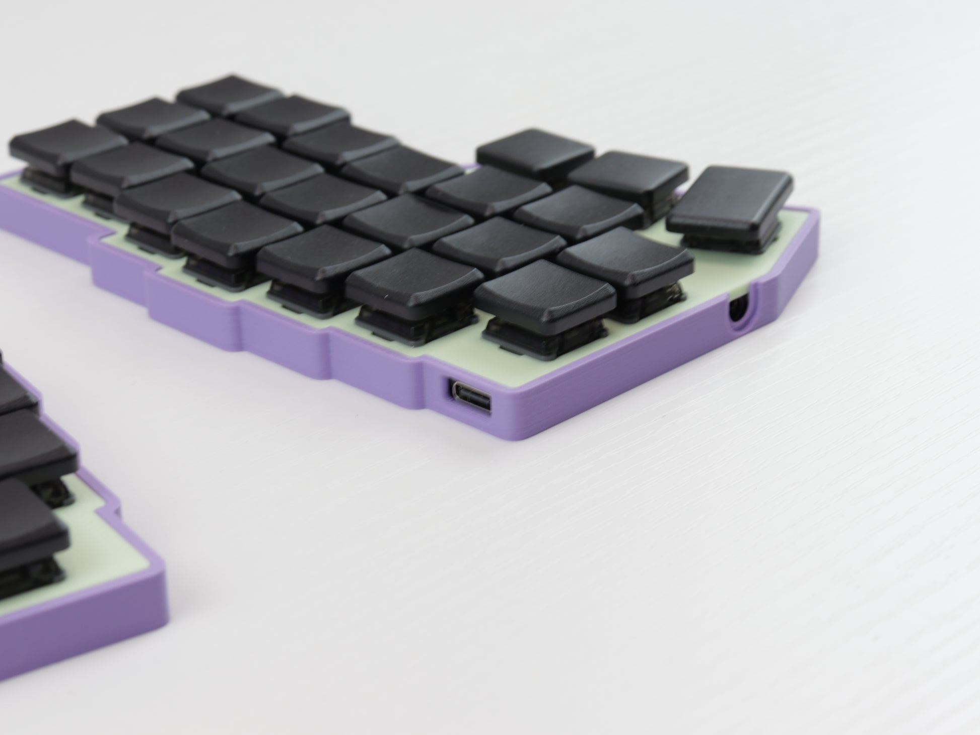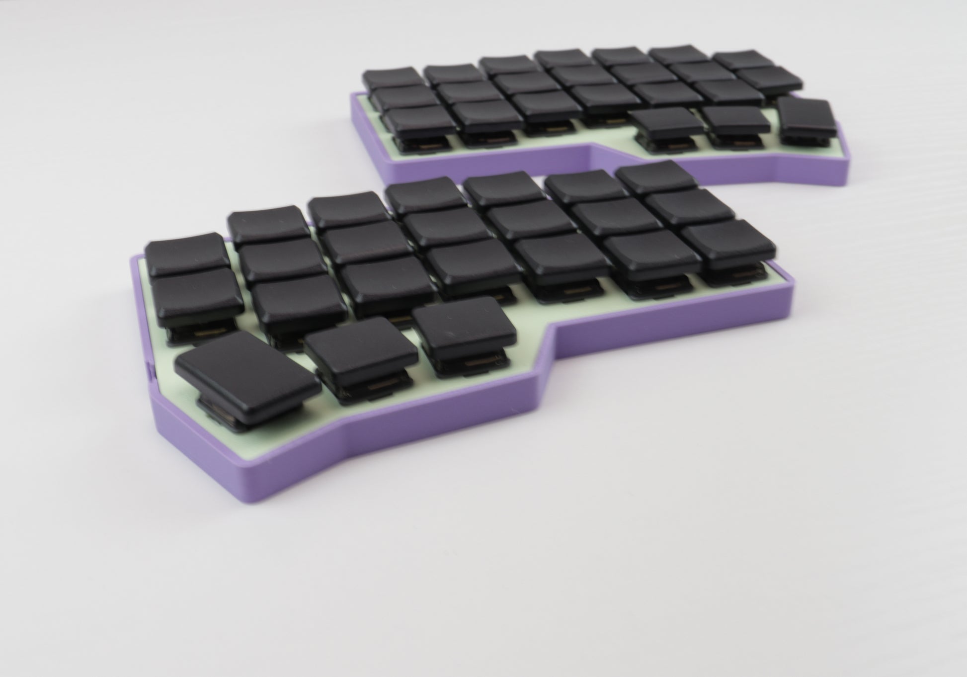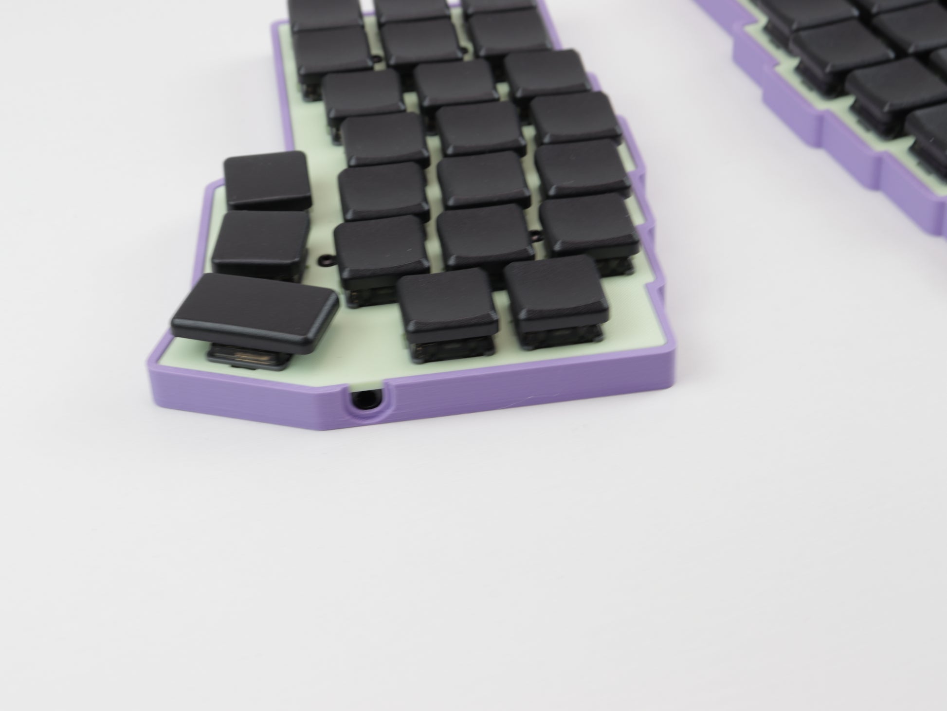 All my keyboards are unique. I design the cases and pick colors and keycaps as a theme. I hope you like my "GooseBumps" keyboard. The case color is Lilac Purple and the switch plate is Mint Green.