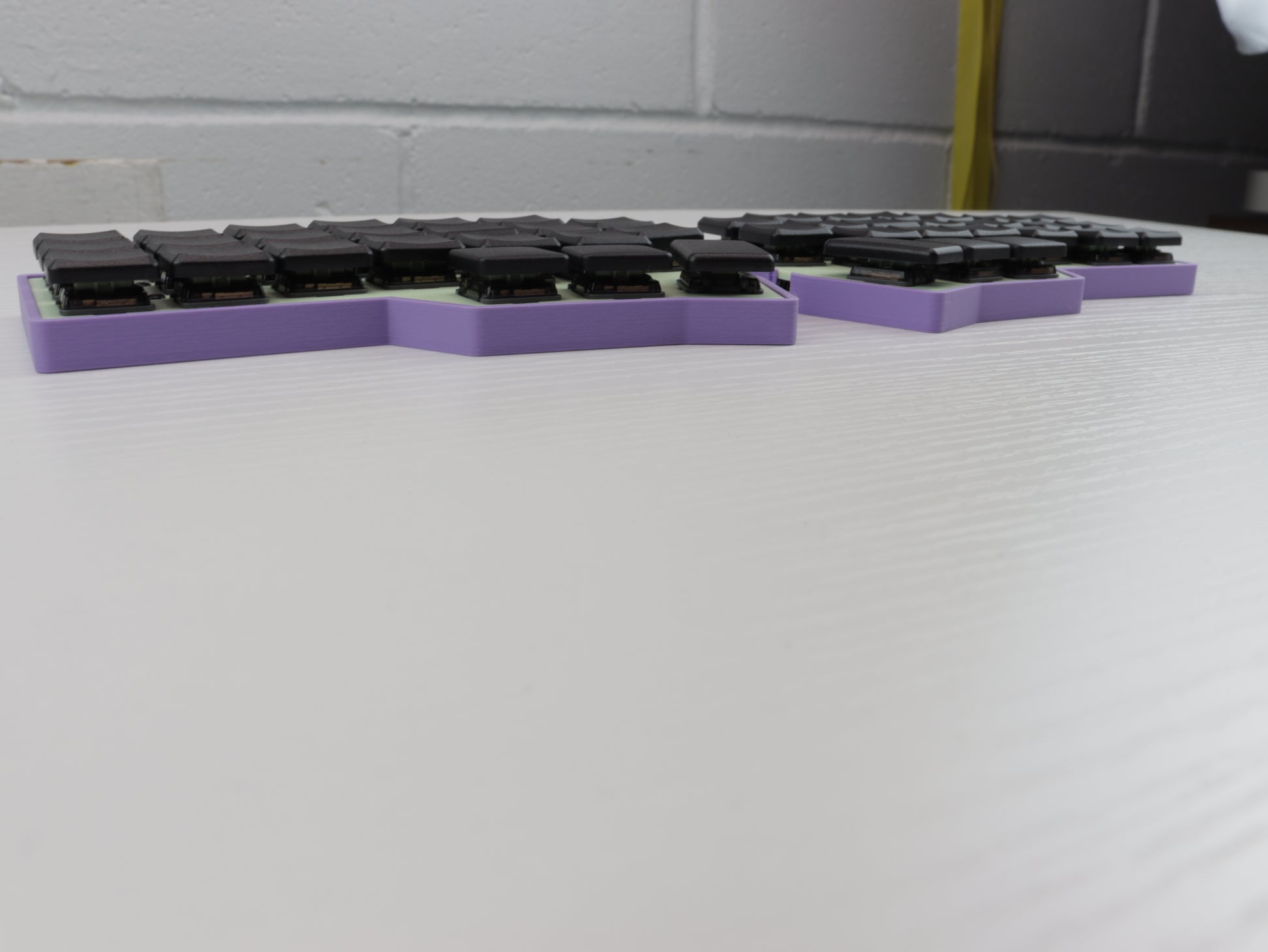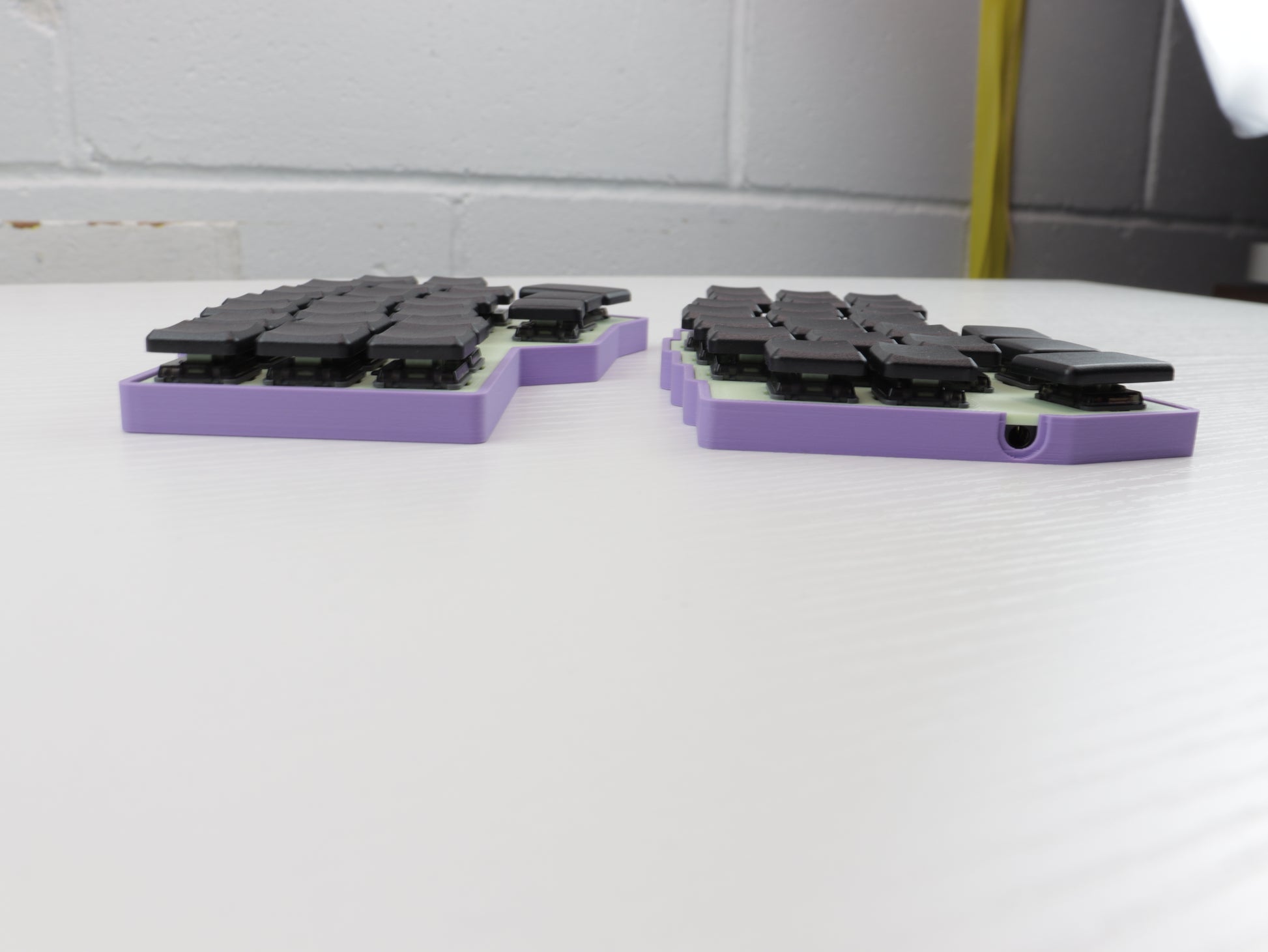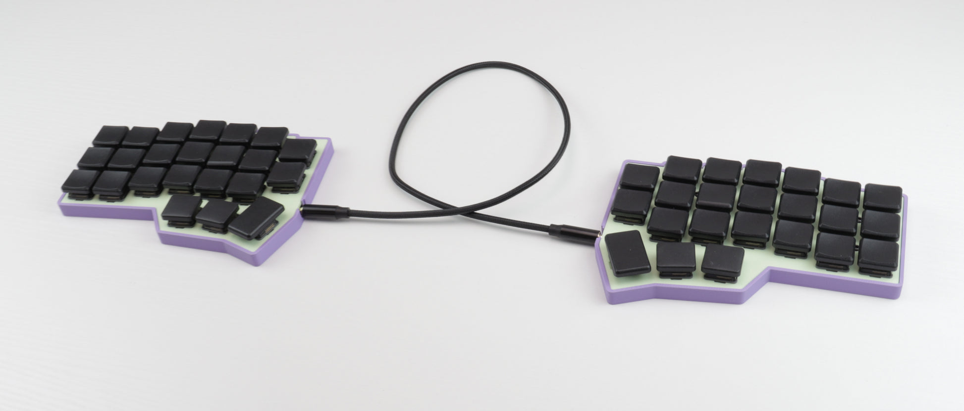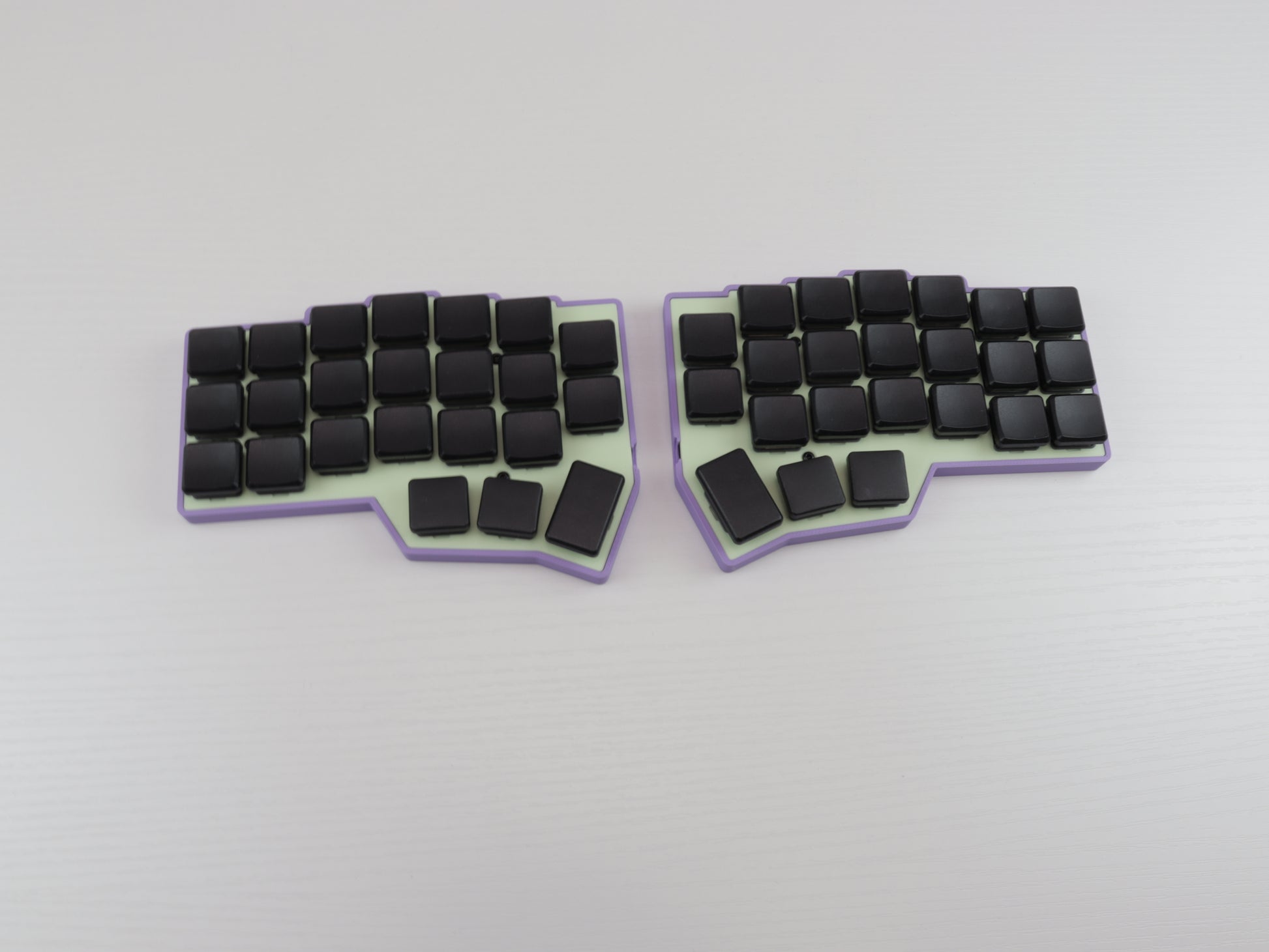 All my keyboards are unique. I design the cases and pick colors and keycaps as a theme. I hope you like my "GooseBumps" keyboard. The case color is Lilac Purple and the switch plate is Mint Green.