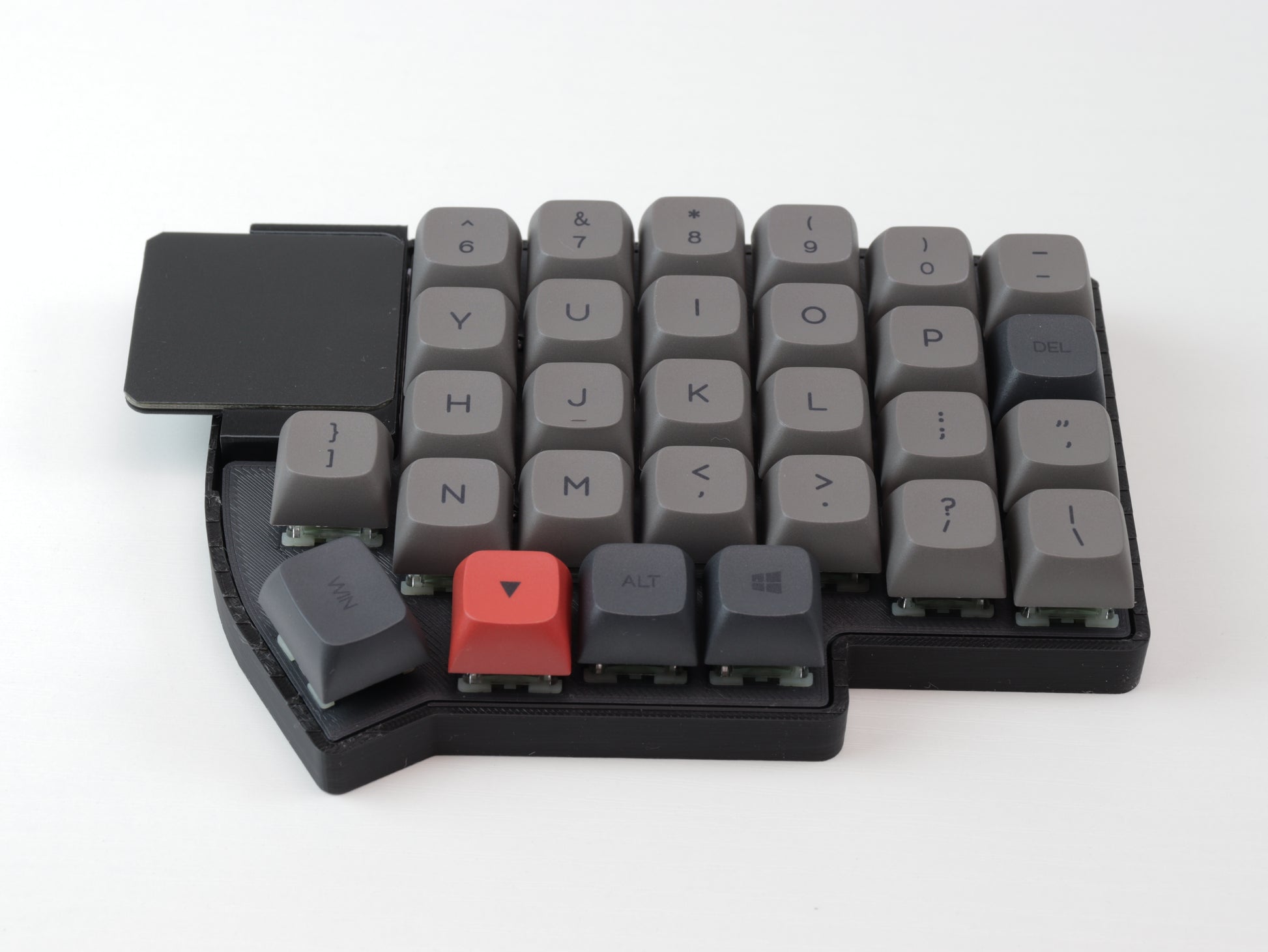 Looking for a low profile version? Check out a similar build with low profile switches and keycaps. https://keyboard-hoarders.com/products/lily58-low-profile-trackpad-glide